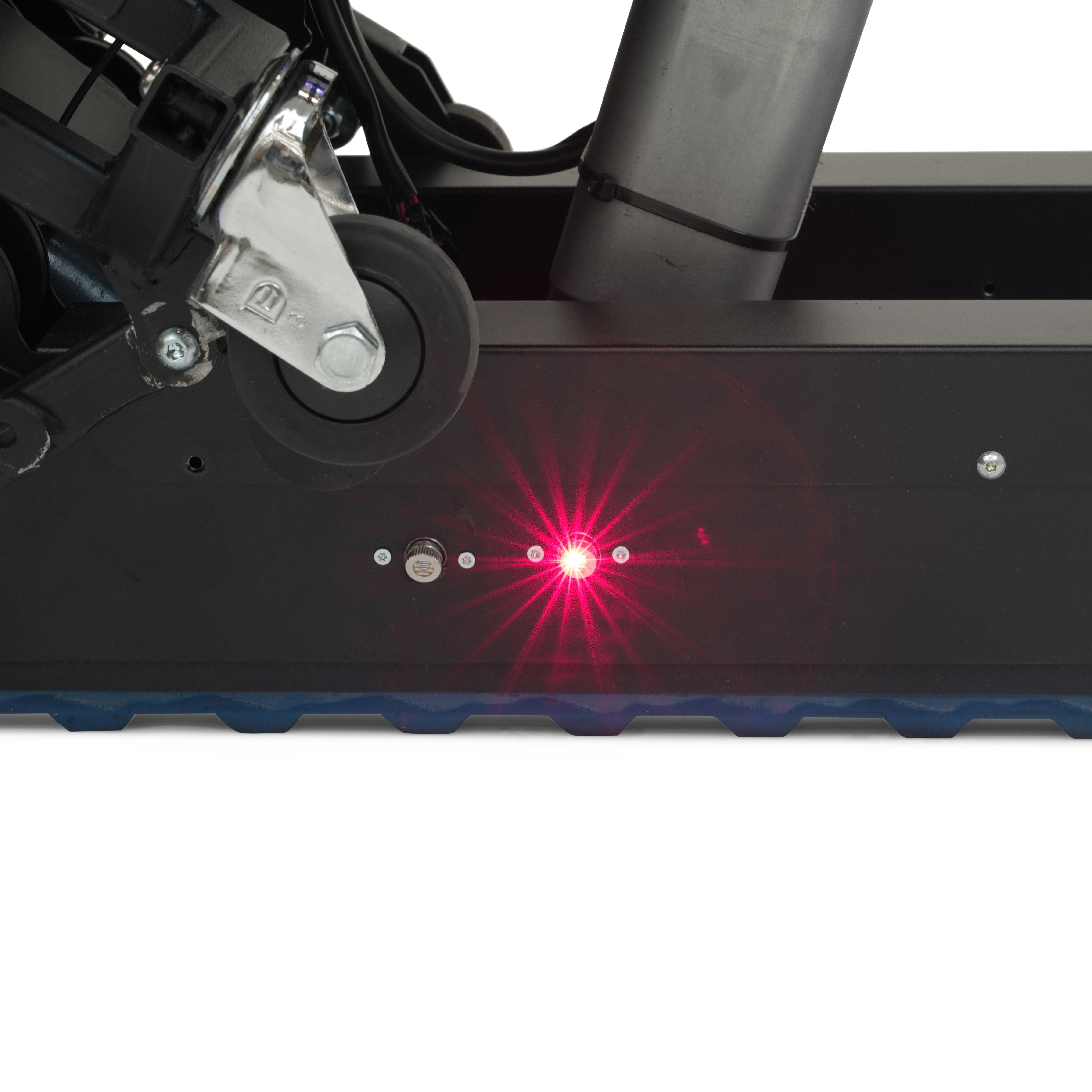 Ein besonderes Highlight sind die elektrischen Stabilisierungsräder. Sie greifen am Treppenabsatz und sorgen für zusätzliche Auflagefläche, was das Absenken der Plattform vereinfacht und den Übergang sicherer macht. Zusätzlich sorgt die integrierte Laser-Technologie für maximale Präzision, indem sie den Übergang von Stufe zu Stufe automatisch erkennt und Ihnen den optimalen Zeitpunkt zur Anpassung des Neigungswinkels anzeigt.