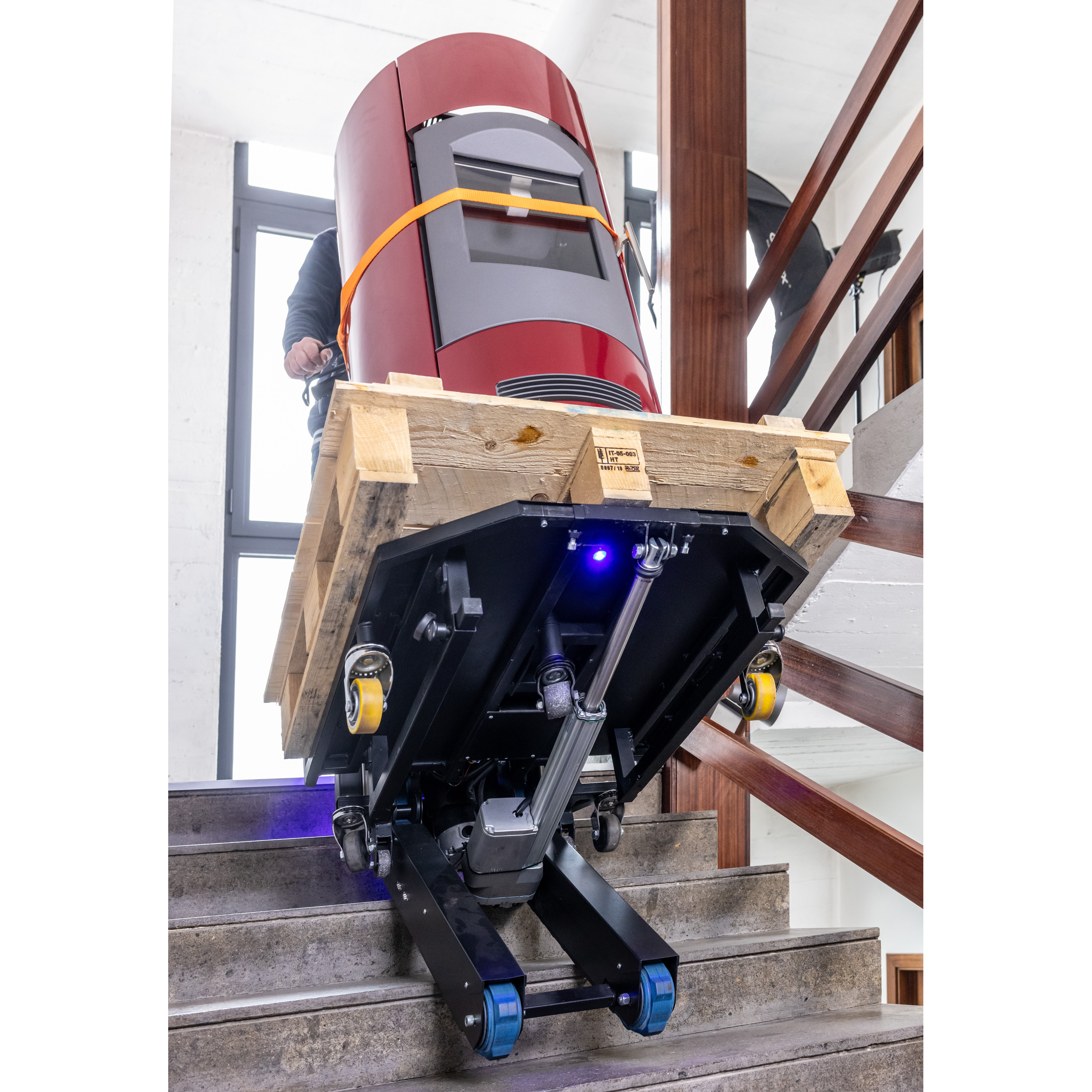 - Hohe Flexibilität: Dank der in der Breite verstellbaren Ladeplattform passen Sie den Treppensteiger perfekt an die Ladungsgröße an, auch in schmalen Treppenhäusern.