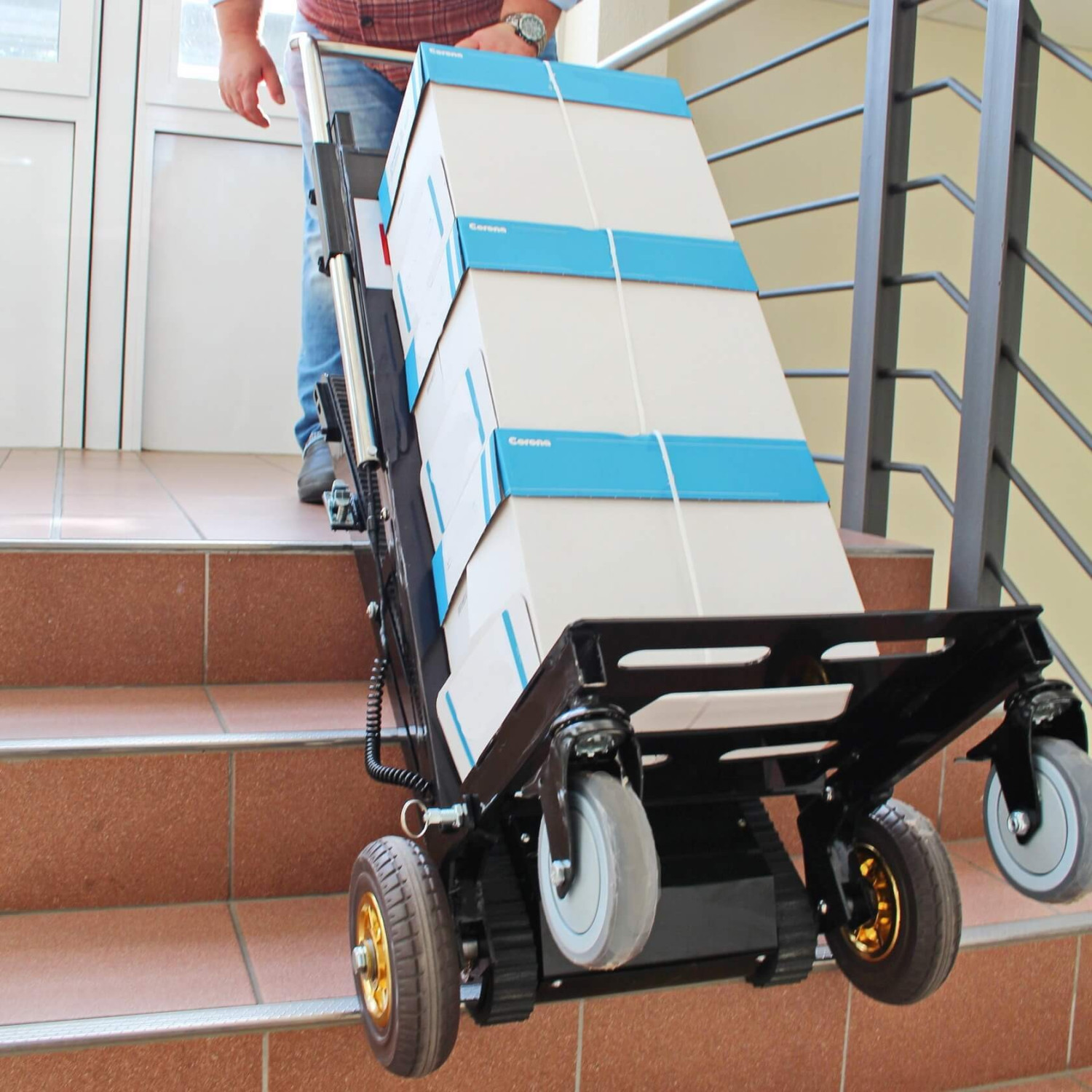 - Einfacher Transport: Die extra langen Gummiraupen greifen auf drei Stufen gleichzeitig, was Ihnen einen sicheren Halt ohne manuelles Ausbalancieren garantiert. Das gesamte Gewicht der Ladung wird vollständig auf die Treppe übertragen, was Sie körperlich entlastet.