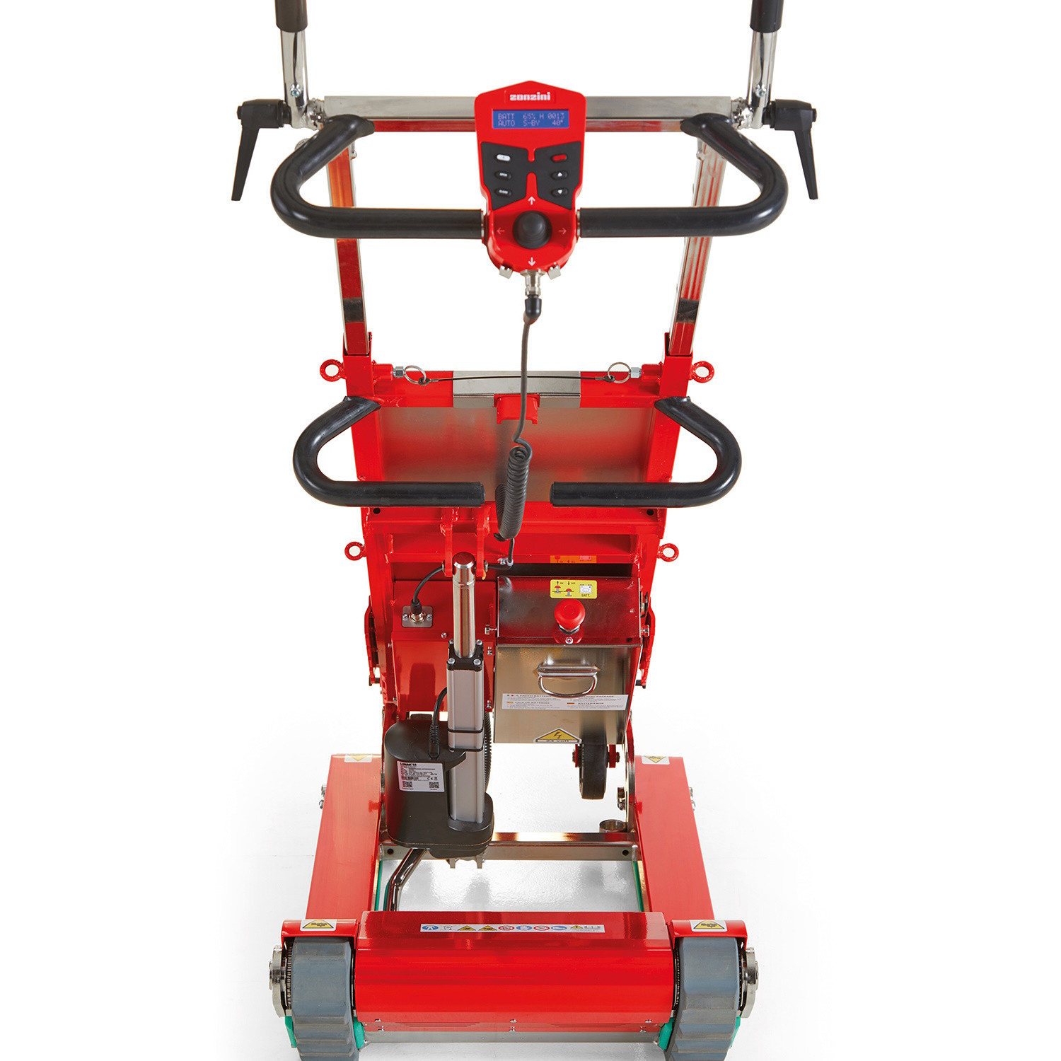 - Dank regulierbarer Schräglage der Last beim Überwinden der Treppe, können auch Bereich mit niedriger Deckenhöhe passiert werden