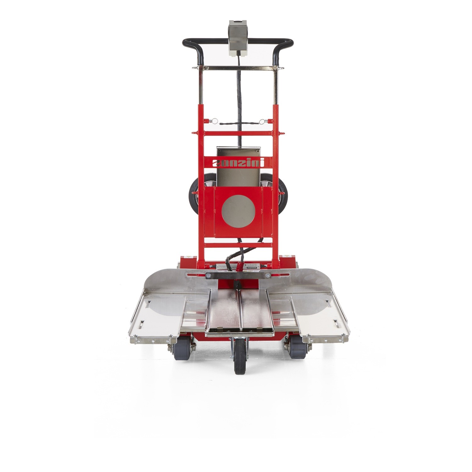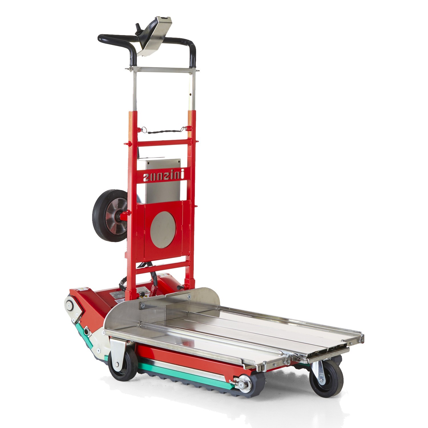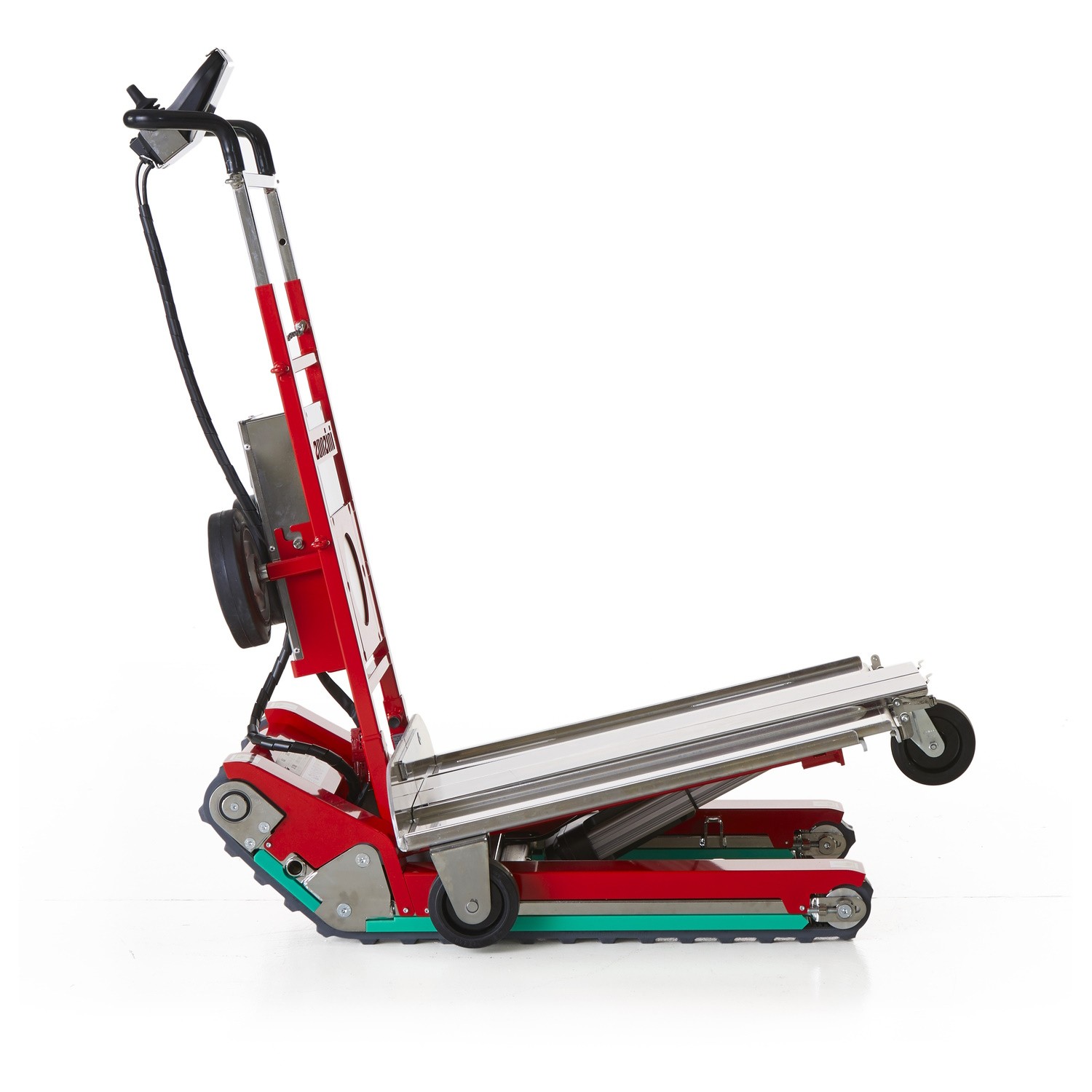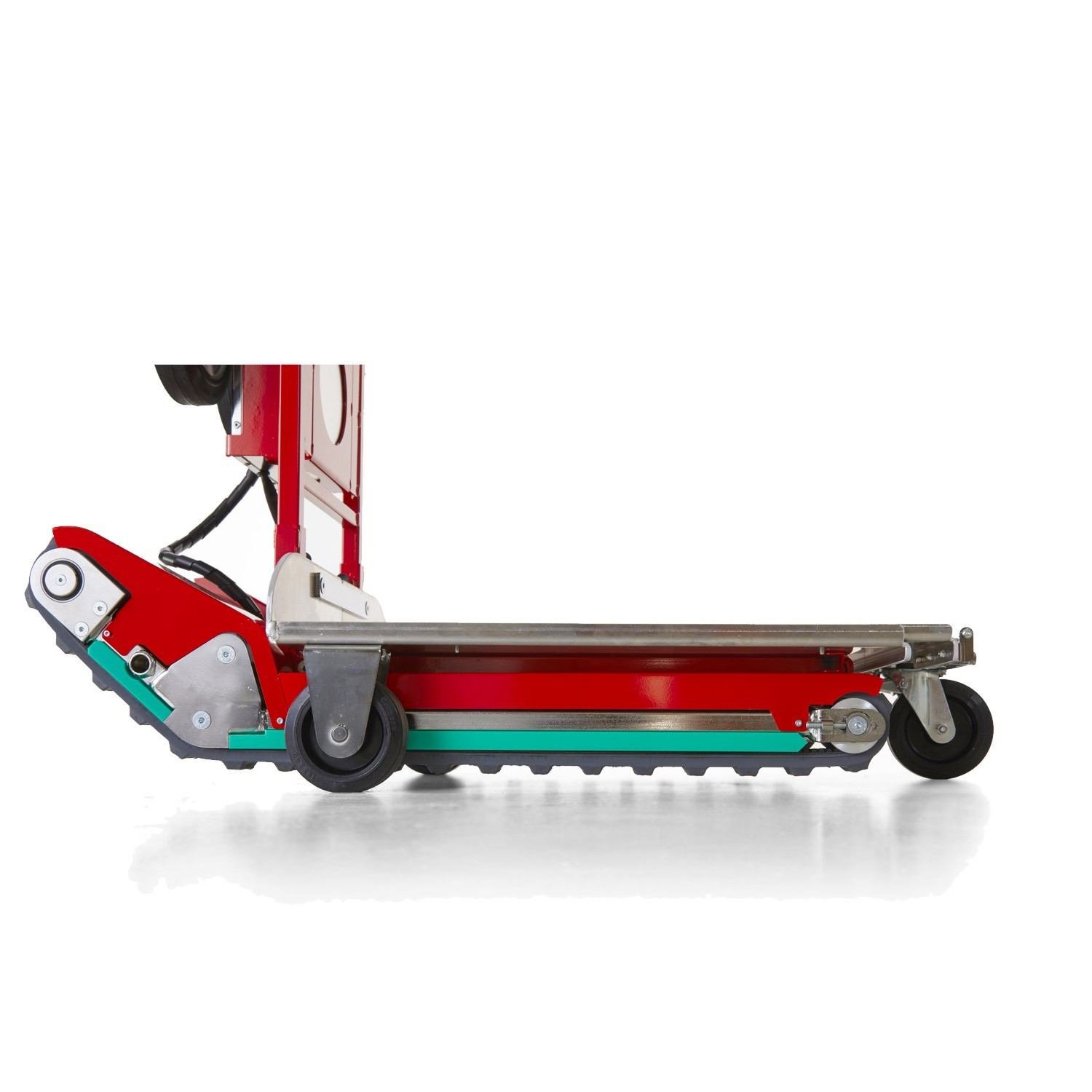 - Durch die hinzugefügten Rollen ist ein manuelles Verfahren auf ebenerdigen Flächen möglich und schont dabei die Batterie